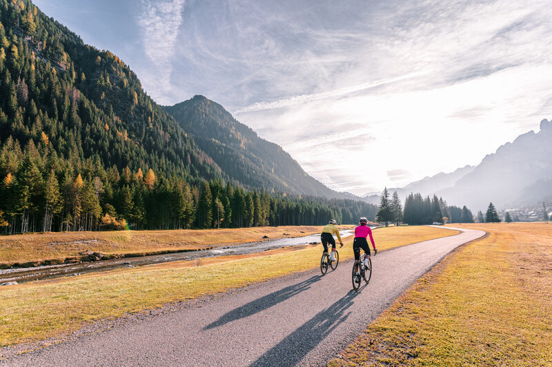 Der kombinierte Rad- und Fußweg durch das Fassatal und Fleimstal ist eine 48 Kilometer lange Strecke von Canazei bis Molina di Fiemme. Er folgt dem naturbelassenen Lauf des Avisio und schlängelt sich wie ein Band aus Asphalt durch Wälder und Wiesen - taucht ein in die Stille der Natur und kehrt in die lebendigen Dörfer zurück.