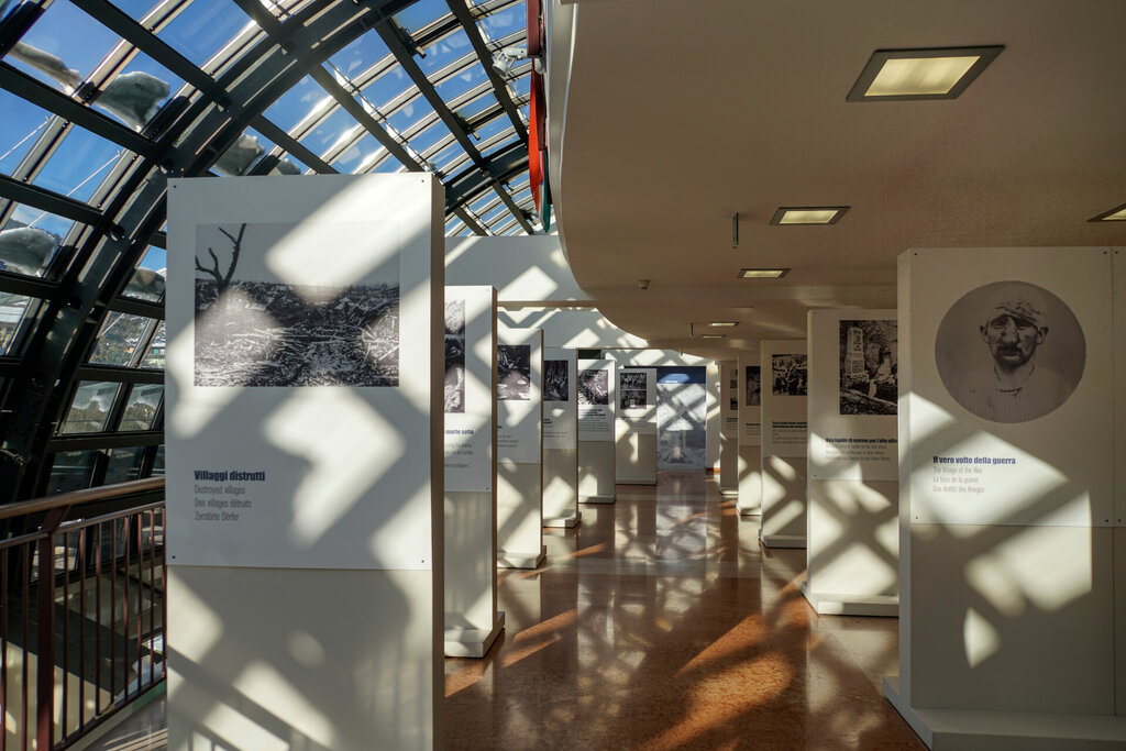 Diese vom Ladinischen Kulturinstitut, dem Verein "Sul fronte dei ricordi" und der Gemeinde Moena geförderte Ausstellung bietet mehr als 500 m² Ausstellungsfläche, die in vier Abschnitte unterteilt sind, von denen jeder tiefe Saiten berührt: Galizien 1914, Der Schützengraben, Dolomiten 1915 und Krieg gegen den Krieg. Hier erwecken realistische Dioramen, Vitrinen und Fotografien aus der Antike, Gigantografien sowie Original-Audio- und Videodokumente die Angst, den Mut und die Beharrlichkeit von Männern in Uniform - Italiener, Österreicher, Russen, Ungarn, Bosnier und Deutsche - an fernen Fronten, aber vereint durch das gleiche Schicksal, zum Leben.