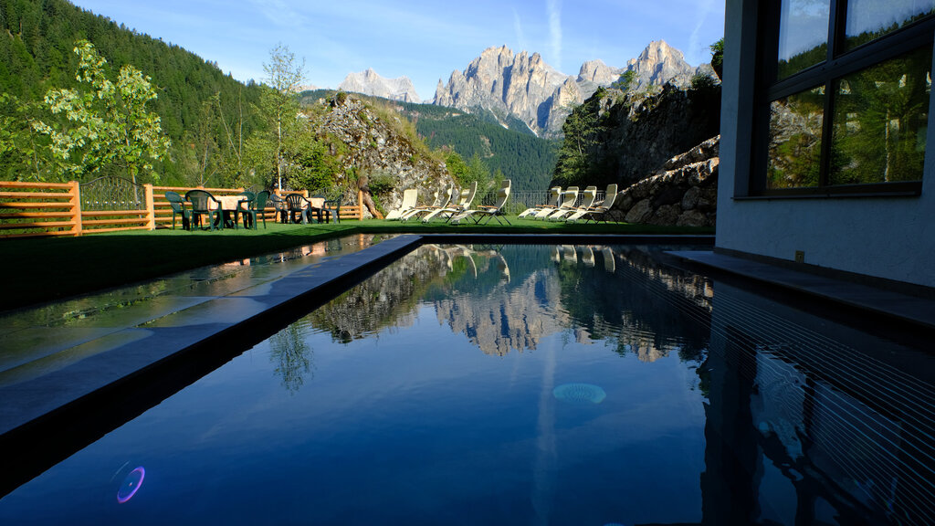 Innen- und Außenpools vor dem Rosengarten, 2 geschlossene Rutschen und 1 Schlauchbootrutsche, "Kids Spray Park", Spa und Beauty Farm lassen Kinder sowie Mama und Papa den Kopf drehen! Das 2017 eröffnete Zentrum ist auch für die Öffentlichkeit zugänglich. Gönnen Sie sich Zeit, entdecken Sie das Vergnügen, zusammen zu sein und kümmern Sie sich um sich selbst dank eines breiten Angebots an personalisierten Behandlungen, auch im Tandem (Eltern-Kind). Der Aquapark Vidor di Pozza am Eingang des Val San Nicolò bietet eine Mischung aus Attraktionen, die speziell auf die Bedürfnisse von Groß und Klein zugeschnitten sind. Wasserspiele, Spritzer und viel Lachen werden von der Familie Pezzei garantiert, die seit 1975 mit Leidenschaft und Professionalität den Campingplatz betreibt, der mit renommierten internationalen Preisen im Bereich des Outdoor-Tourismus ausgezeichnet wurde und sich durch Innovation, ökologische Nachhaltigkeit und nicht zuletzt durch hervorragende Gastfreundschaft auszeichnet.