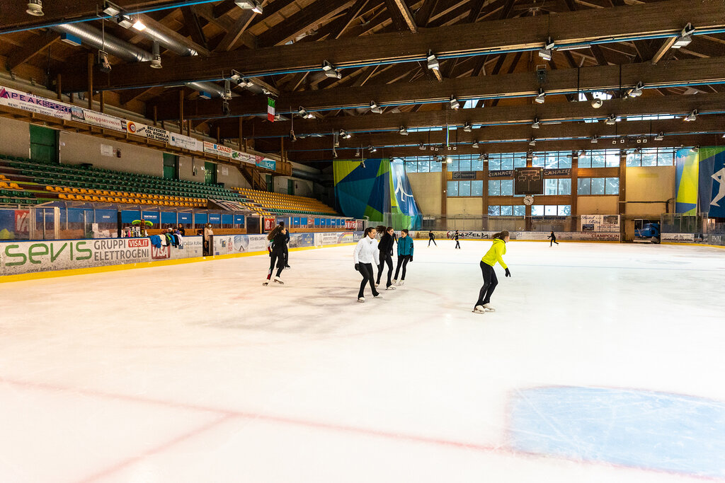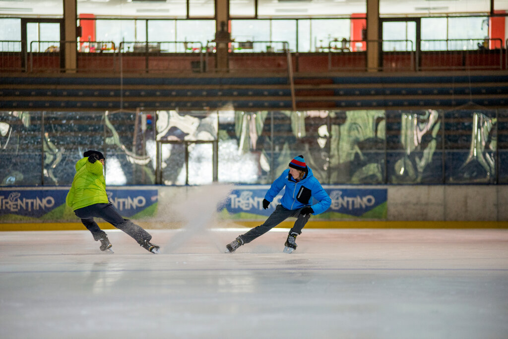 Die weiße, glatte und glänzende Platte lädt dazu ein, mit Schwung und Leichtigkeit durchbohrt zu werden. Im Indoor-Eisstadion "Gianmario Scola" in Alba di Canazei steht eine fabelhafte olympische Piste (30 x 60 m künstlich gekühlt) Anfängern und allen, die Pirouetten und Arabesken beherrschen, zur Verfügung, die im Rhythmus der Musik auf der Klinge gespielt werden. Die 12.000 m ² große Struktur bietet Platz für bis zu 3.500 Personen und ermöglicht es Ihnen, Schlittschuhe zu mieten und auch einige Lektionen zu nehmen, um die Grundtechnik zu erlernen oder den Stil zu verbessern. Die Begleitpersonen können hinter den Balustraden auf den Tribünen zusehen oder sich in der Bar der Eishalle aufwärmen.