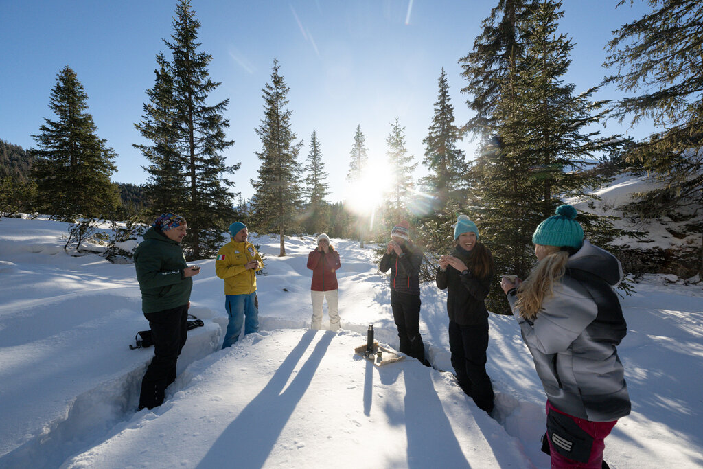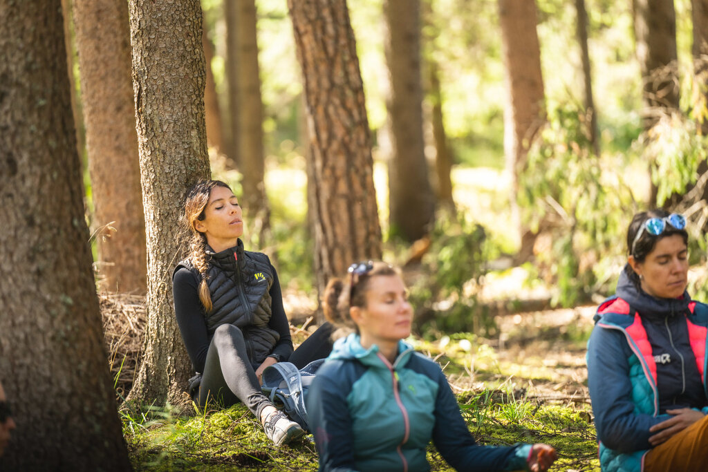 Verlangsamen zu können, vor allem der Geist, braucht Zeit. Aus diesem Grund dauert das Waldbad etwa drei Stunden: eine langsame, sorgfältig gebaute Zeit. Es beginnt mit einer Wiederverbindung mit dem Körper und den Sinnen, geht weiter zur Begegnung mit der Natur und endet mit einem Moment des Teilens, um die Erfahrung in Bewusstsein zu verwandeln.