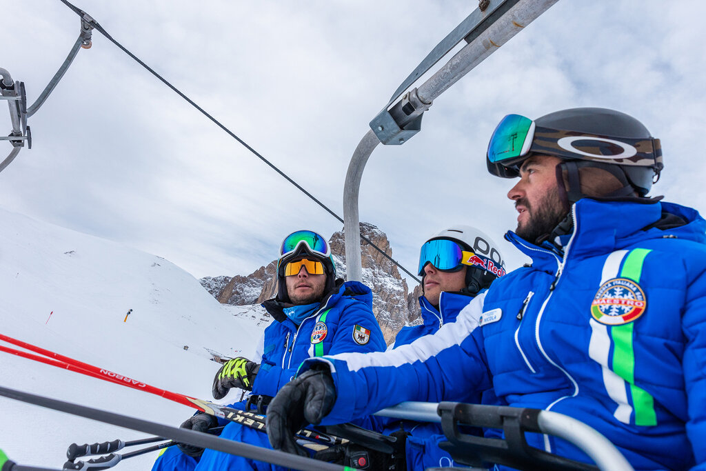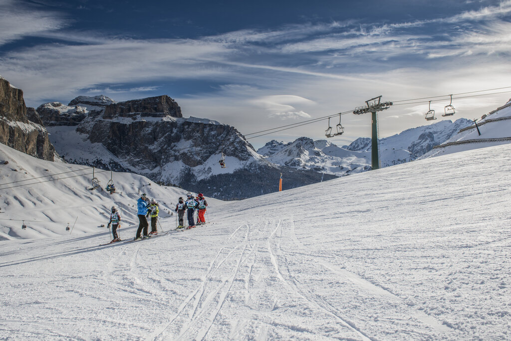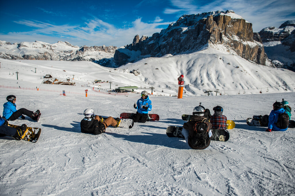 Der Unterricht findet im Skigebiet Col Rodella-Belvedere statt (Treffpunkt bei der Schutzhütte Des Alpes; Bürotelefon +39 329 1251668). Kurse verfügbar in: Italienisch, Englisch, Deutsch, Russisch. Helm und Skiversicherung obligatorisch.