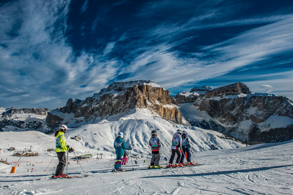 Die ersten Rutschen im Schnee finden auf dem Schulgelände in der "Strèda Roma" am Eingang des Dorfes statt, abwechselnd mit Spielen im Banzimalia Winter Park, wo die Kinder frei spielen und Spaß an der frischen Luft haben können. Die Schule ist auch mit einem eigenen "Kinderland" organisiert, dem Kindergarten in der Nähe der Abfahrt der Seilbahn Col Rodella, die Kinder ab 3 Jahren mit Animation, Mittagessen und Betreuung empfängt.