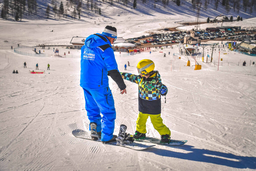 Die ersten Rutschen finden auf den Schulcamps auf der Alpe Lusia (3,5 km von Moena) oder am San Pellegrino Pass (11 km von Moena) statt, die auch für Familienmitglieder/Nicht-Skifahrer leicht sind erreichbar.