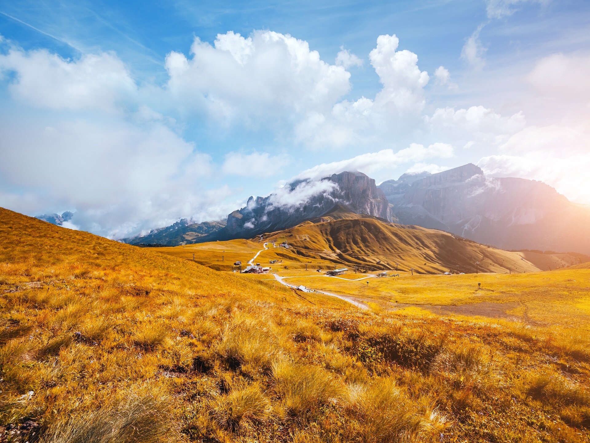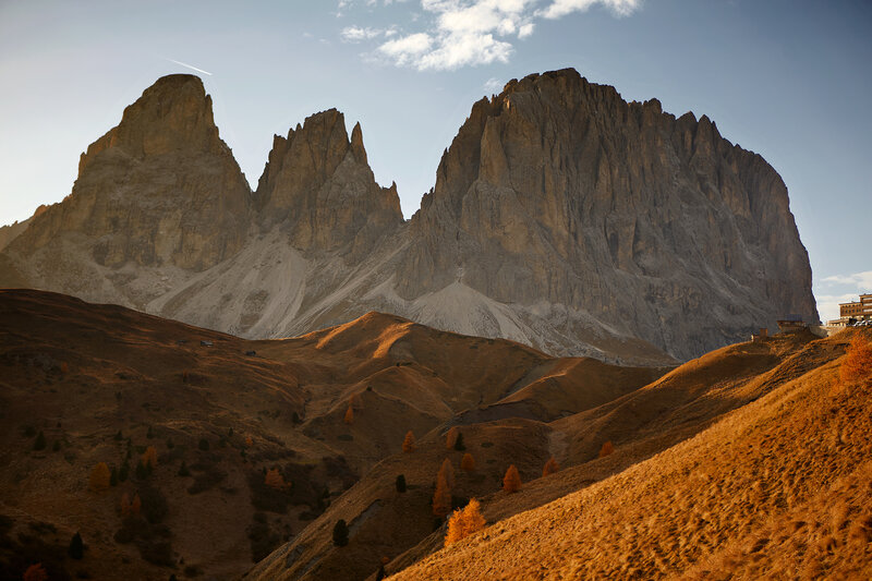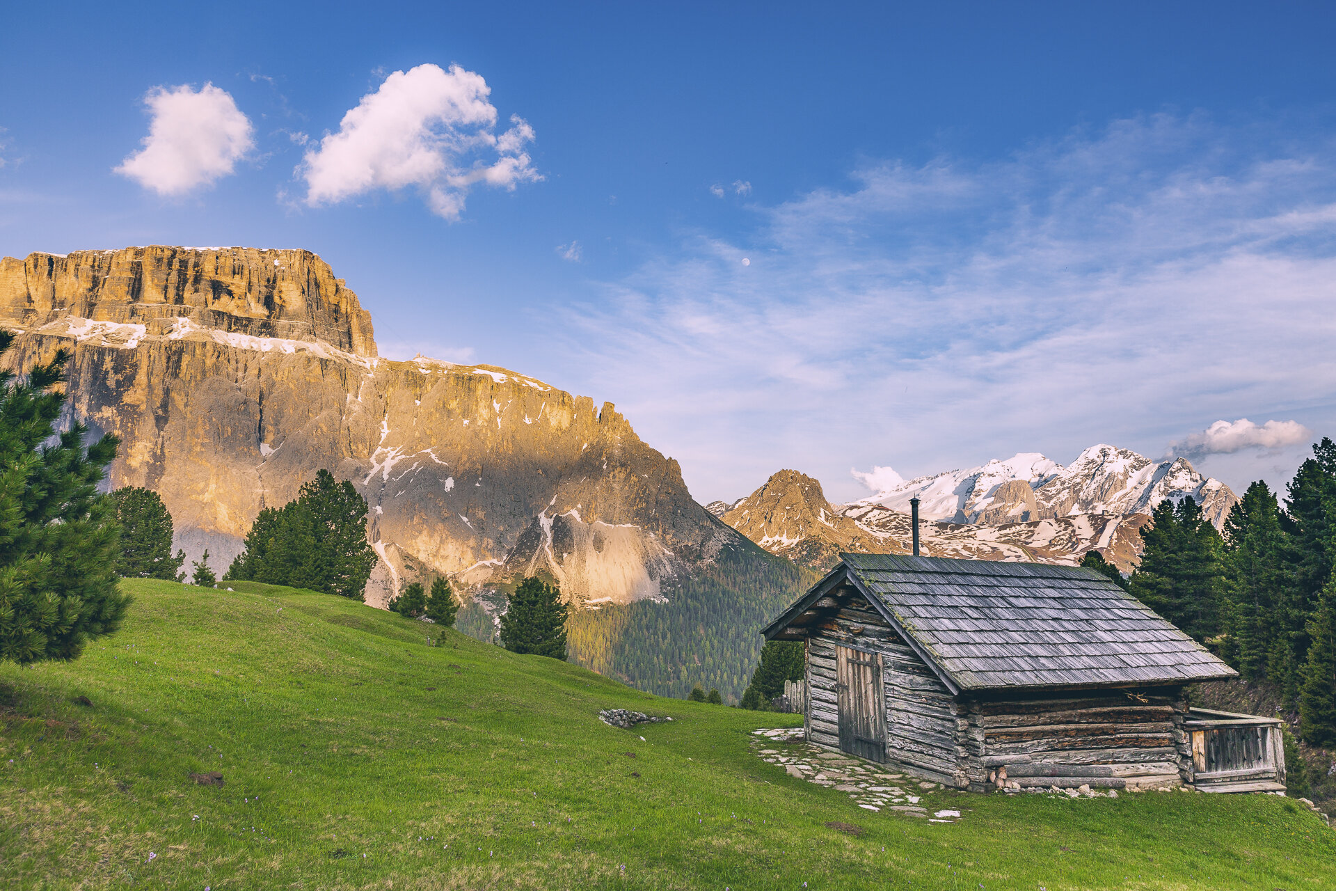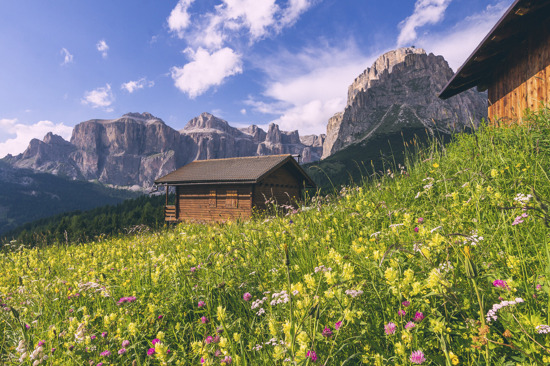Das malerische Zentrum von Canazei ist zwar sehr leicht zu erreichen, aber man kann auch in einem der zahlreichen Unterkünfte am Passo Sella übernachten.